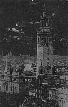 buildings pictured are busily lighted. The card below pictures