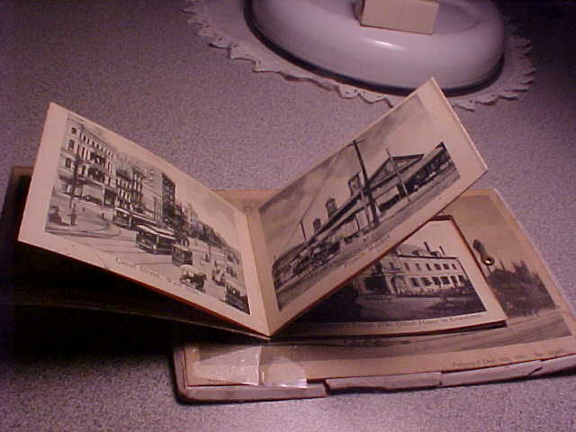 | As the miscellaneous page, item 2., shows, one group of Rotographs was a predecessor of modern day "souvenir" fold-outs. These came with a large view on the face, say of the state capitol of Colorado, in Denver, but included a small window which locked shut or opened to reveal a series of related views. The Denver card is especially prized because CO cards do not turn up as often as those from the populous East. Another sample, sent in by a collector, shows how the New Orleans views folded out. |